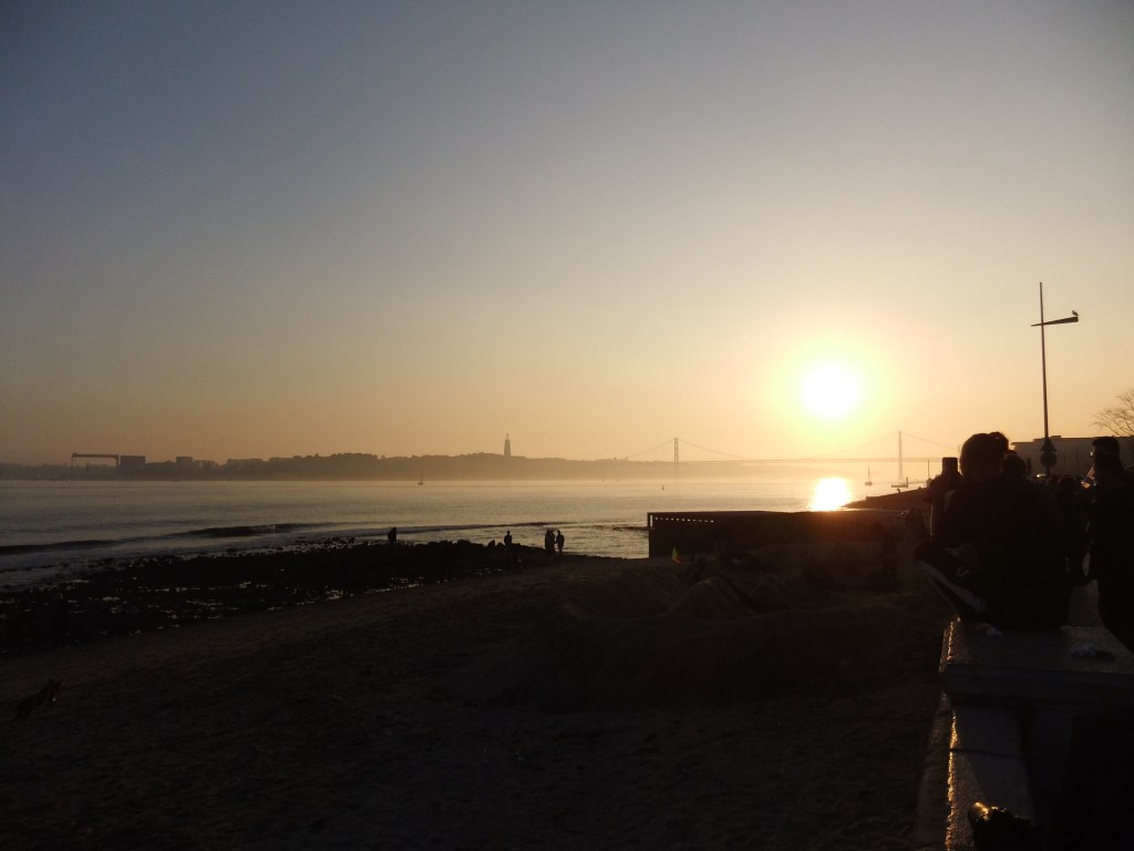 Sunset in Lisbon with The ‘Golden Gate Bridge’ in the background on the left. Praca do Comercio on the right.