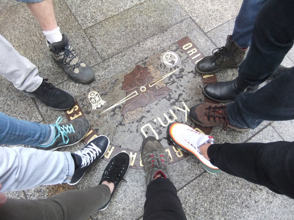 The building on the left is the Plaza Mayor, used to be the centre of Old Madrid. On the right our feet are on Spain’s Kilometre Zero, which is the middle of Madrid.
