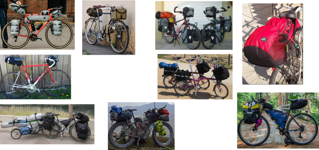 There are so many choices and options available. What you ride and what style touring you are doing will also determine the bags that you use to carry everything in.